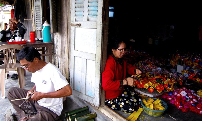 Join a cycling tour in Hue to learn Thanh Tien paper flower handicraft